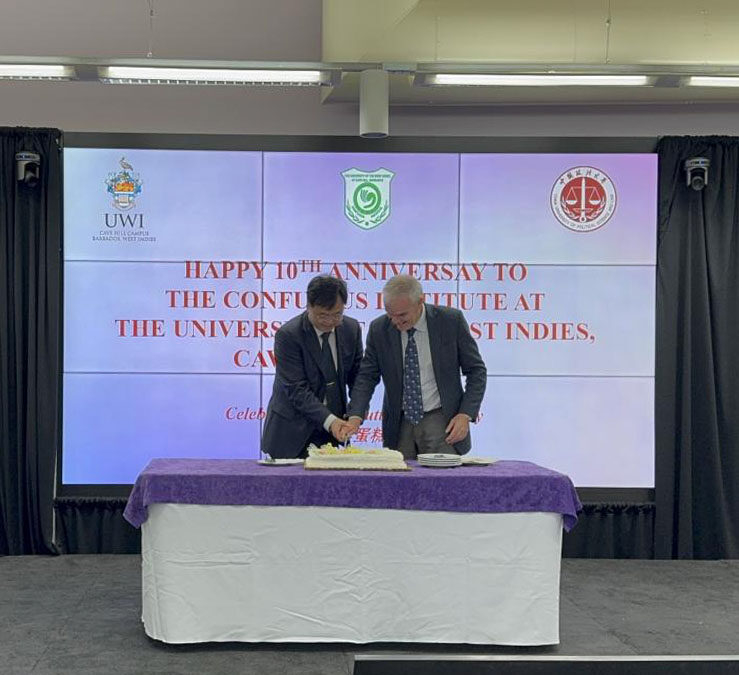 巴巴多斯时间2025年4月24日晚,我校共建巴巴多斯西印度大学凯夫希尔分校孔子学院(以下简称“巴巴多斯孔院”)在西印度大学凯夫希尔分校萨吉科尔商业与管理学院会议厅隆重举办建院十周年庆典。众多嘉宾齐聚一堂,共同回顾孔院十年发展历程,展望未来新篇。