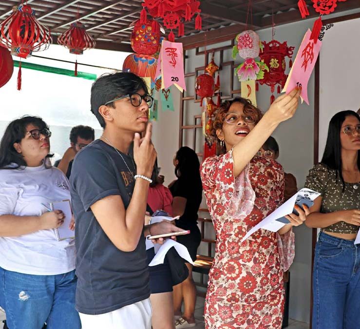 2025年2月12日,巴西帕拉州立大学孔子学院在五彩斑斓的灯笼映衬下,如梦似幻,洋溢着浓厚的节日气息。学生们沉浸在一场浪漫而热烈的元宵节庆典中,在欢声笑语里感受这一中国传统佳节的独特魅力。