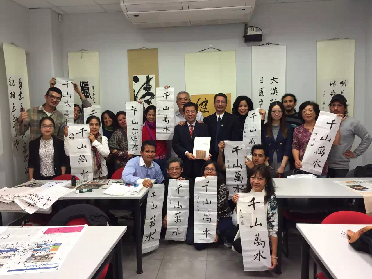 _____当地时间6月20日到6月24日,秘鲁天主教大学孔子学院成功举办“上海市书协大字书法秘鲁特展暨联合国官员书法邀请展”。本次书法作品展览以“书法艺术传播与世界和平”为主题,受到秘鲁各界人士的欢迎。展览期间,上海书法家协会教育委员会副主任、华东师范大学中华文化国际传播研究院常务副院长周斌教授应邀为秘鲁天主教大学和孔子学院师生及书法爱好者做学术讲座和书法培训。